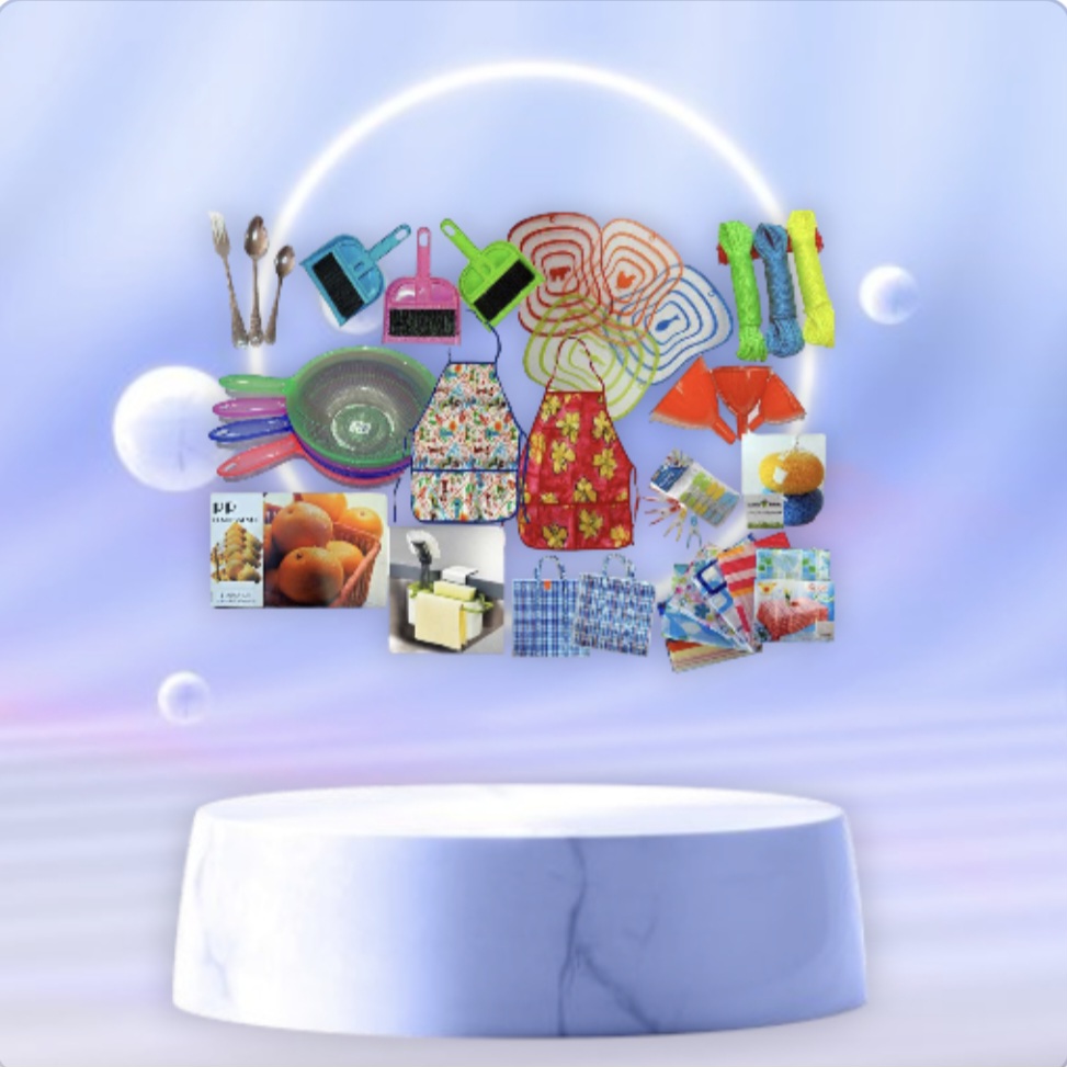 Platus drabužių, švaros, higienos ir grožio prekių asortimentas.