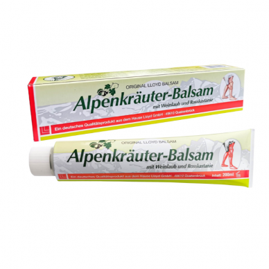 Jei turite problemų dėl prastos veninės kraujotakos, išsiplėtusių venų, kojų skausmų ir mėšlungio, skilinėjančių kapiliarų, simptomines vietas patrinkite Alpių balzamu. Dėl sudėtyje esančio mentolio ir vėsinančio poveikio Alpių balzamas akimirksniu suteikia palengvėjimą ir lengvumo pojūtį. Alpių balzamo augalinės sudedamosios dalys padeda sumažinti skausmą, patinimą, mėšlungį, kojų nuovargį, raumenų įtampą, atsirandančią dėl ilgo sėdėjimo, stovėjimo ar prastos kraujotakos. Pasižymi priešuždegiminiu poveikiu, stiprina veninių kraujagyslių sieneles, mažina kapiliarų jautrumą ir pralaidumą, apsaugo nuo patinimų, greitina venų cirkuliaciją, didina kraujotaką ir mažina uždegiminių venų paraudimą. Jis gaminamas pagal tradicinį receptą, gaminamas iš daugybės vaistinių augalų, tokių kaip: mėtų, sibirinės eglės aliejaus, laukinių kaštonų ekstrakto, mentolio, vynuogių lapų ekstrakto, porų ekstrakto ir kt. Unikali kompozicija su Alpių žolelėmis ir eteriniais aliejais veikia greitai ir efektyviai.